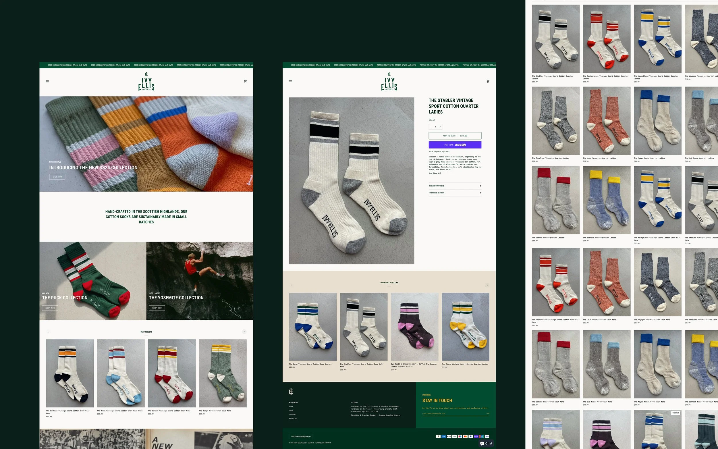 We’ve recently being helping Ivy Ellis get their sock company off the ground with a light visual identity pack, including logo, colour palette, visual language, packaging and Shopify e-commerce website.